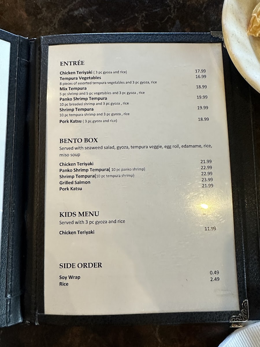 BENTO BOX(Served with seaweed salad, gyoza, tempura veggie, egg roll, edamame, rice, miso soup.)